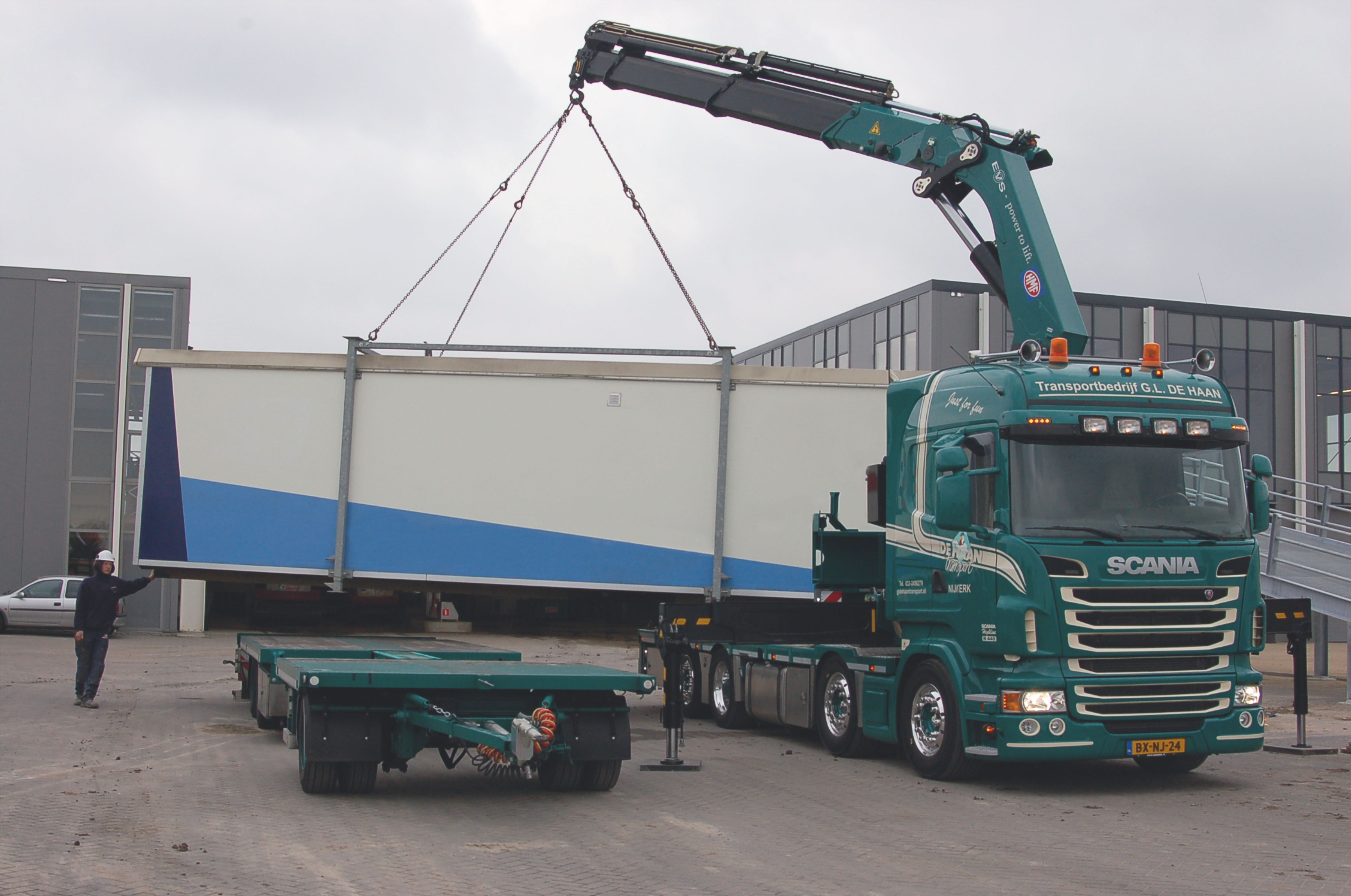 Wilt u een bouwlocatie inrichten met opslagcontainers en units (‘mobile homes’)? Transportbedrijf G.L. de Haan B.V. zorgt dat de units en containers op de juiste dag op de juiste plaats staan. Ongeacht of het om een compacte (opslag)container gaat of om een unit van 12 meter. We beschikken over wendbaar materieel, compleet met autolaadkranen. Bel de Haan en de bouw kan beginnen…