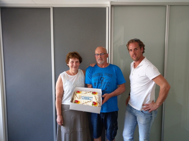 Op 19 juni 2019 togen Graddus Sr. en Graddus Jr. de Haan naar Harskamp om Jaap van den Brink te feliciteren met 40 jaar dienstverband bij achtereenvolgens van den Brink Transport te Kootwijkerbroek, van Maanen Transport BV te Barneveld en sinds 12 november 2012 Transportbedrijf G.L. de Haan B.V. te Nijkerk. Het kwam mooi uit want Jaap heeft 's woensdags vrij en de mannen uit Nijkerk werden dan ook warm welkom geheten. Jaap en Anneke werden onder andere getrakteerd op een taart die ook direct werd aangesneden en na een gezellig samenzijn waarin veel dingen van hoe het vroeger was, uitvoerig werden besproken, keerden Sr. en Jr. weer richting Nijkerk.