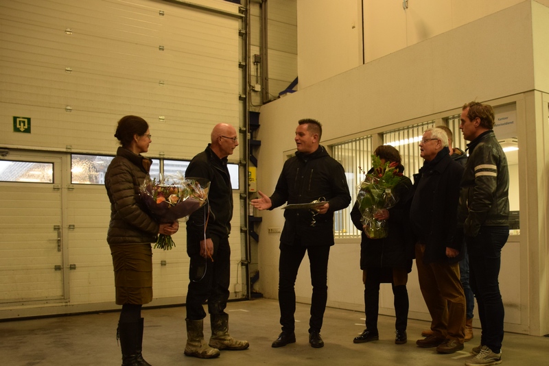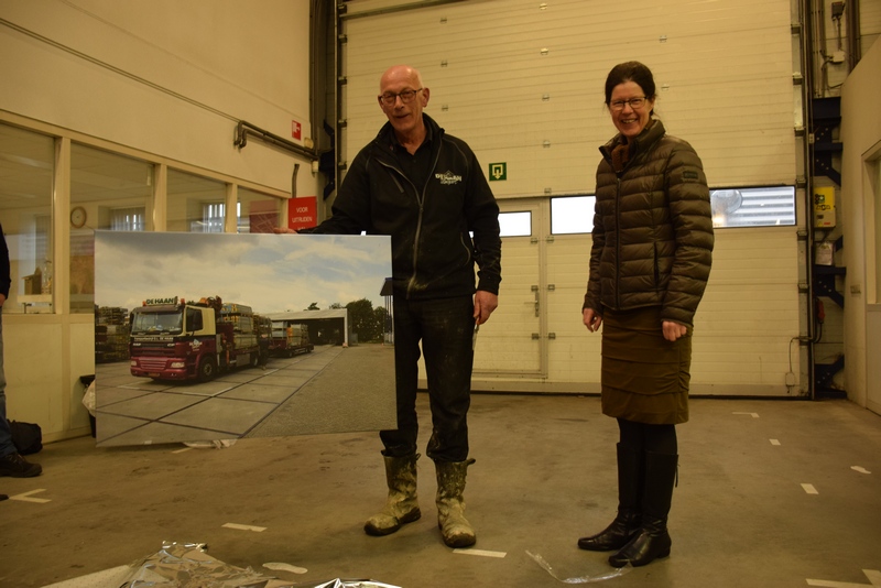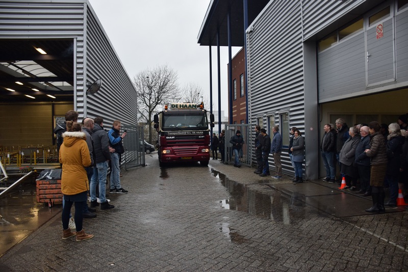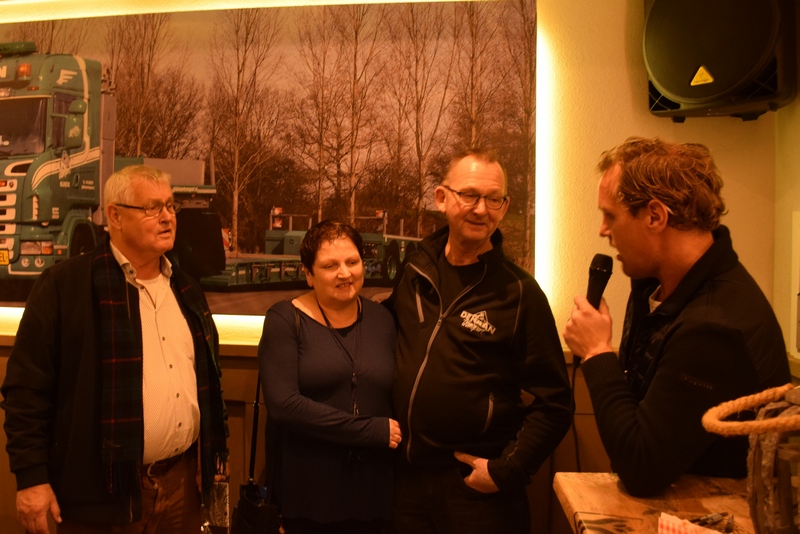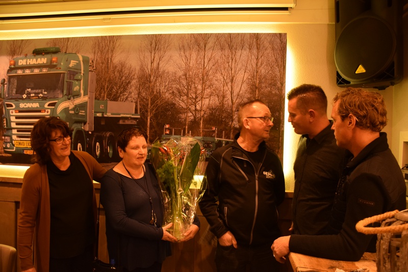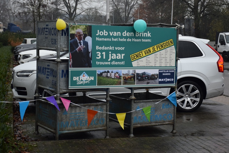 Tijdens de receptie kreeg Job van Matemco een horloge aangeboden en ook nog een mooi foto van zijn vrachtwagen op canvas. Namens Transportbedrijf G.L. de Haan overhandigde Teo de Haan Job een cadeau en de bloemen werden gegeven aan Evelien, Job's vrouw. Met Job is nu ook zijn vrachtwagen met pensioen overigens.