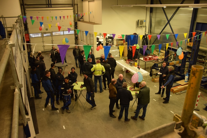 De feestelijkheden begonnen in Ede waar Job van den Brink z'n laatste vracht steigermateriaal moest lossen. Omdat Job het overgrote deel van zijn werk als chauffeur op de vrachtwagen voor Matemco reed, al veertig jaar overigens, was in overleg met hen besloten, zijn afscheidsreceptie aldaar te vieren. Job werd tussen 14.00 uur en 14.30 uur verwacht maar zoals zo vaak gebeurde, was Job weer veel sneller dan waarop werd gerekend en moest de planning hals over kop zorgen dat Job nog een extra opdracht kreeg om uiteindelijk wel op de goede tijd aan te komen. Zo kwam Job dus aanrijden opgewacht door familie, vrienden, collega's en medewerkers van Matemco.