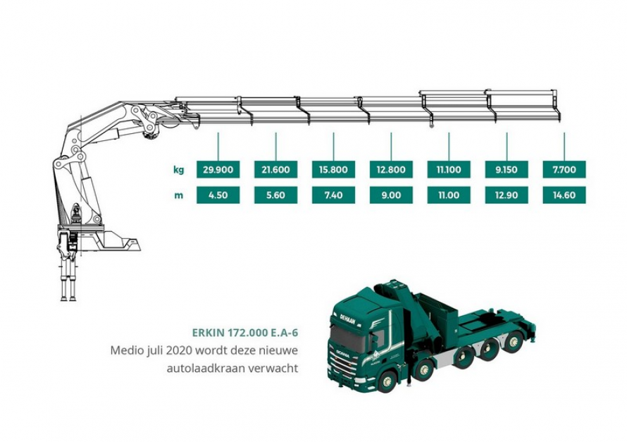 Nummer 3 betreft de investering in een 5-assige Scania trekker R540 B10X4*6NB 20H met een zeer zware autolaadkraan van het merk Erkin. Deze tot dusverre zwaarste kraan van het bedrijf moet meer mogelijkheden bieden voor het tillen van zware objecten zoals bijvoorbeeld machines, tanks, spoorwissels en dergelijke